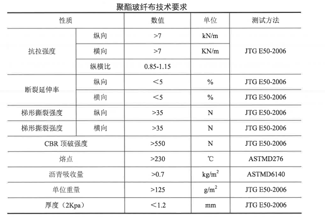 聚酯玻纖布的技術(shù)質(zhì)量要求(具體詳見報(bào)價(jià)資料合同):聚酯玻纖布是由聚酯纖維和玻璃纖維合成的無紡合成材料,供貨單位必須提交出廠檢驗(yàn)報(bào)告及進(jìn)口商檢報(bào)告,質(zhì)量標(biāo)準(zhǔn)見如下表: