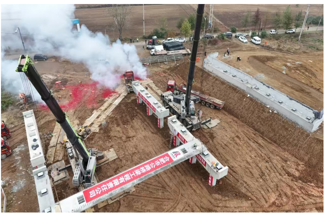 2024年11月10日上午,在合肥路橋淮桐高速公路合肥段3標(biāo)施工現(xiàn)場(chǎng),機(jī)器轟鳴,一片繁忙。隨著指揮人員一聲令下,項(xiàng)目花崗西互通K97+943.2大橋首件預(yù)制箱梁精準(zhǔn)落位,這標(biāo)志著合肥路橋淮桐高速3標(biāo)項(xiàng)目正式進(jìn)入橋梁上部結(jié)構(gòu)施工。