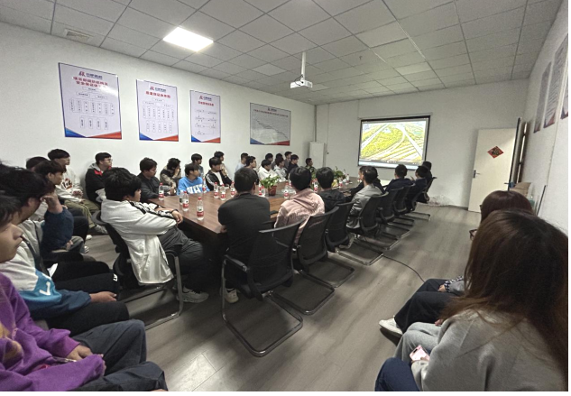 在項(xiàng)目部會(huì)議室,項(xiàng)目負(fù)責(zé)人向前來(lái)參觀的師生介紹了企業(yè)情況及近年來(lái)企業(yè)取得的發(fā)展,隨后就沈陽(yáng)路項(xiàng)目情況及現(xiàn)階段水穩(wěn)施工情況進(jìn)行重點(diǎn)介紹。