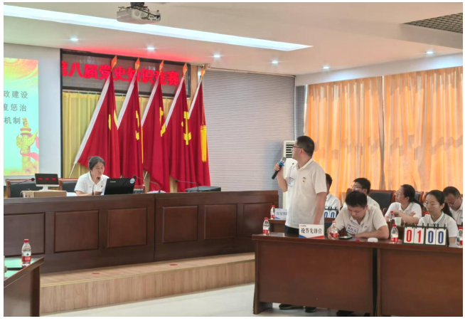 比賽過(guò)程中,6支黨支部代表隊(duì),24名參賽選手以飽滿的熱情投入到這場(chǎng)知識(shí)的比拼之中。現(xiàn)場(chǎng)氣氛熱烈非凡,各參賽隊(duì)伍精神抖擻、斗志昂揚(yáng),踴躍作答,充分展現(xiàn)出扎實(shí)深厚的黨史知識(shí)功底。