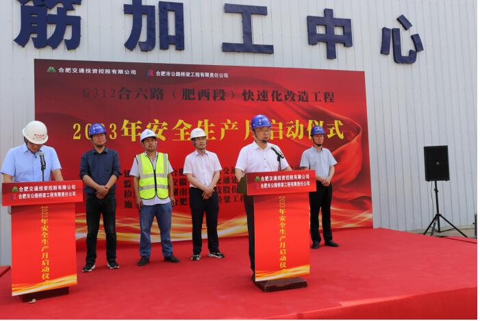 6月1日上午10時(shí),合肥路橋G312合六路(肥西段)快速化改造工程2023年“安生產(chǎn)全月”順利啟動(dòng)。合肥路橋支部書記、執(zhí)行董事楊楓出席活動(dòng)并作動(dòng)員講話,合肥交投合六項(xiàng)目公司董事長、總經(jīng)理陳風(fēng)明出席活動(dòng)并宣布2023年“安全生產(chǎn)月”活動(dòng)正式啟動(dòng)。