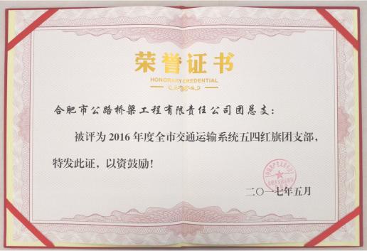 近日,合肥市交通局對2016年度全系統優秀團支部進行了表彰,合肥路橋公司團支部榮獲“五四紅旗團支部”稱號。