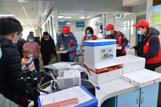 4日上午,合肥路橋交通軌道6號線項目部志愿者們一早便開始了忙碌,買菜、擇菜、烹飪、裝箱,上午11:10分,42份熱騰騰的飯菜準時送達了安醫二附院。在安徽善之源兒童保護部主任、合肥路橋學雷鋒志愿服務隊張燕同志的帶領下,李曉磊、等3名志愿者帶著42份美味可口的飯菜和橙果樹美育機構捐贈的水果走進醫院8號樓為患兒們送上新年的祝福。