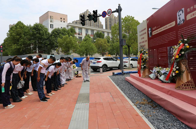 會(huì)后,雙方代表共同參觀了合肥路橋湯口路臨時(shí)黨支部黨員活動(dòng)室及項(xiàng)目駐地建設(shè),并共同驅(qū)車前往延喬路,向革命烈士陳延年、陳喬年敬獻(xiàn)花籃。