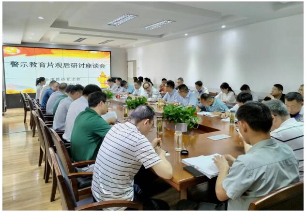 為進一步筑牢思想防線,強化企業黨員干部的廉潔從業意識,6月26日,合肥路橋組織全體黨員召開廉潔警示教育研討座談會,與會同志結合此前觀看的警示教育宣傳片,以及各自崗位職責進行了交流發言。